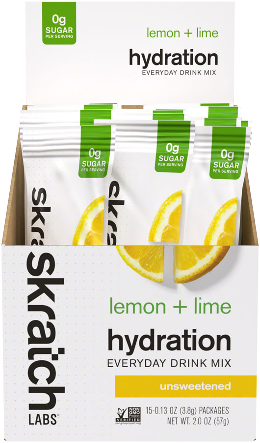 Sskratch Labs unsweetened Hydration Everyday Drink Mix is made with electrolytes and a squeeze of real fruit. It's for those times when you're thirsty and need electrolytes but nothing more. It's not a one-sip pony. You can also combine it with our other mixes or use multiple servings to customize electrolytes for your individual needs. Adaptable usage: 0g of sugar and low calorie (10) for drinking when you need electrolytes and nothing more Personalized hydration: Add more or less to your favorite drink to suit your individual electrolyte demands Preload to feel your best: Can be used to help athletes avoid starting workouts at a hydration deficit Ingredients:Sodium Citrate, Citric Acid, Potassium Citrate, Calcium Citrate, Magnesium Carbonate, Lemon Oil, Lime Oil, Lemon Juice, Lime Juice, Ascorbic Acid. Skratch Labs Everyday Drink Mix Sport Hydration UPC: 859943003216