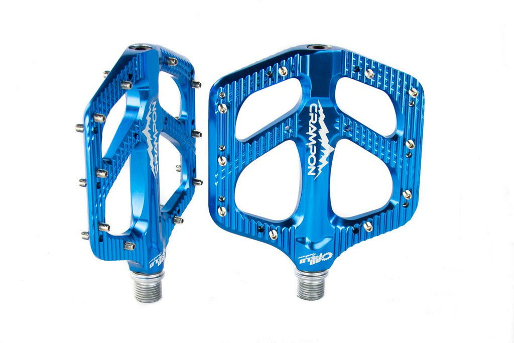 The Crampon Mountain shares many of the features that make the Crampon Ultimate one of the best pedals on the market, including the patented convex shape, ultra-thin 6-millimeter leading edges and double sided pins for easy removal, combined with a fresh new look, an even larger 112-millimeter by 106-millimeter platform and virtually maintenance free internals that utilizes a bushing at the axle side and stacked bearings at the end internally.