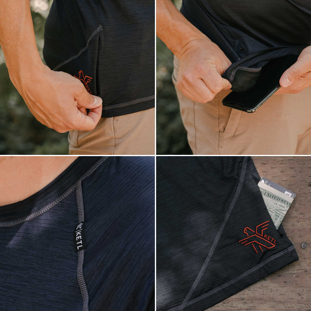 KETL Mtn Wayward Casual MTB Short Sleeve Jersey - Durable, Breathable, Zipper Pocket Men's Mountain Bike Shirt Black Men's