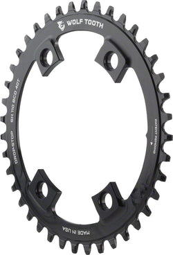 • Designed to fit 4-arm 110 Asymmetric BCD Shimano Road Cranksets. These rings feature the patent pending Drop-Stop asymmetrical tooth design for the best in wear life, mud clearance, and chain retention.
